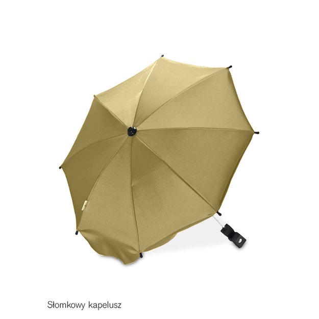 Šiltaisiais metų mėnesiais būtina turėti skėtį nuo saulės. Nepriklausomai nuo vežimėlio tipo, universalus spaustukas leidžia lengvai jį sumontuoti ir užtikrina tvirtą sukibimą su vežimėlio rėmu. Skėtis apsaugo ne tik nuo saulės spindulių, bet ir pridengia nuo švelnaus lietaus ir vėjo. Lankstus petys leidžia greitai ir lengvai reguliuoti skėtį.