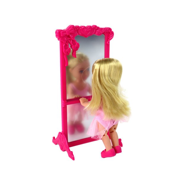 Be to, rinkinyje yra didelis rožinis veidrodis, kuriame mama ir dukra lėlės gali į save pasižiūrėti ir praktikuoti baleto judesius. Visas rinkinys skatina žaidimą ir kūrybiškumą, lavina vaikų vaizduotę, kurie gali kurti įvairius santykių scenarijus ir baleto pasirodymus. Tai puikus žaislas mažiesiems šokio ir baleto mėgėjams.
