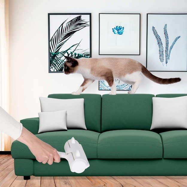 Novatoriškas šepetys paviršiams nuo naminių gyvūnų plaukų valyti padės palaikyti švarą jūsų namuose.