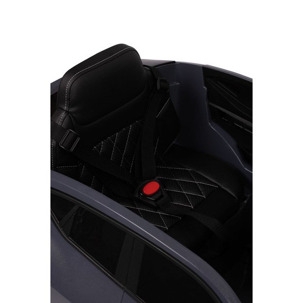 The model is equipped with EVA foam wheels that are quiet and resistant to wear. Thanks to the rear shock absorbers, the vehicle handles uneven terrain excellently. The interior is meticulously designed – the seat upholstered in soft eco-leather not only looks elegant but also provides comfort and is easy to clean.