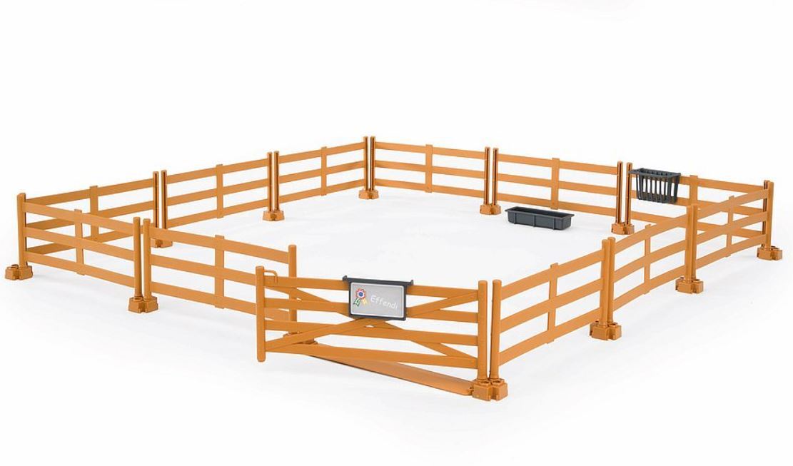 Elementus galima derinti pagal savo skonį, padidinti aikštę arba sukurti įvairias situacijas. Rinkinį sudaro vienuolika tvoros elementų, vartai, šieno lentyna, vardinė lentelė ir pašarų lovelis.