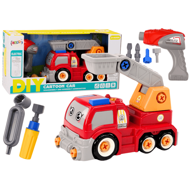 Pridedamas įrankių rinkinys, įskaitant grąžtą, atsuktuvą ir tris keičiamus antgalius, yra neatsiejama šio žaislo dalis, leidžianti vaikams patiems išardyti ir surinkti transporto priemonę. Dėl to vaikai ne tik smagiai praleidžia laiką, bet ir sužino, kaip veikia sunkvežimis, kartu lavindami savo rankų darbo įgūdžius, koncentraciją ir kūrybiškumą.