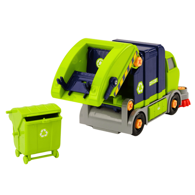 Žaislas dar tikroviškesnis dėl pridedamo šiukšlių konteinerio, kuris leidžia imituoti tikrą šiukšlių rinkimą. Tai puikus būdas smagiai mokytis apie švaros ir perdirbimo svarbą.