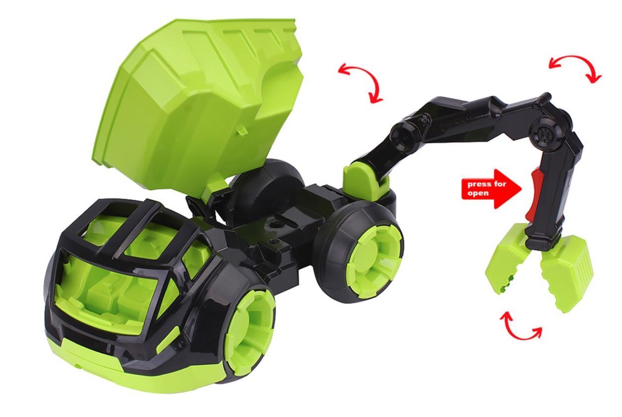 Kaušo dėka smėlis ar žvyras kraunamas be ekskavatorių ir kitų traktorių pagalbos. Daugelis mūsų statybos įmonių svajoja apie tokią mašiną! Manipuliatorius sukasi aplink savo ašį ir juda aukštyn ir žemyn. Kibiras atidaromas mygtuku ant korpuso. Spyruoklės dėka kibiro atvartai yra tvirtai suspausti ir tvirtai laiko smėlį. Su manipuliatoriumi savivarčių žaidimai taps ypač įdomūs.