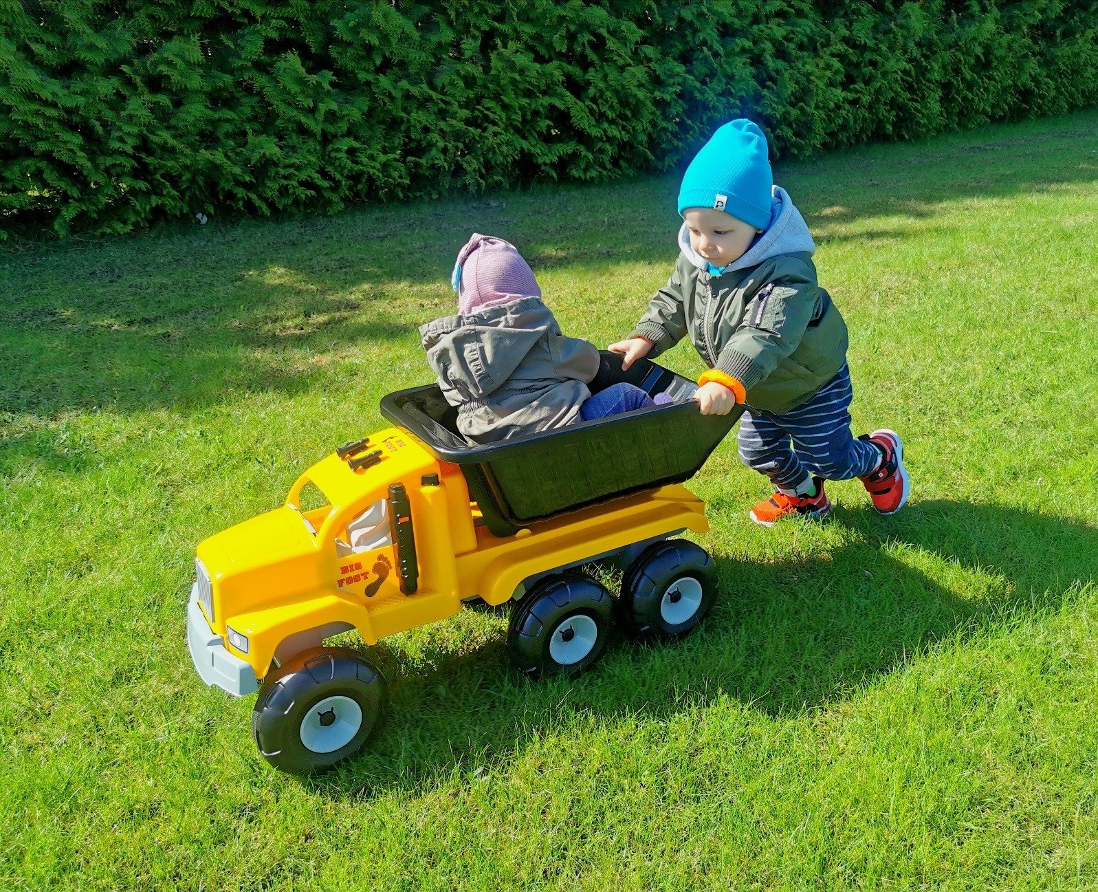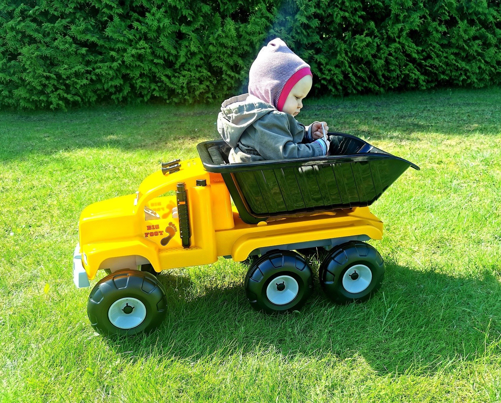 Pagamintas iš tvirto plastiko, tad šį sunkvežimį tikrai sunku sugadinti.