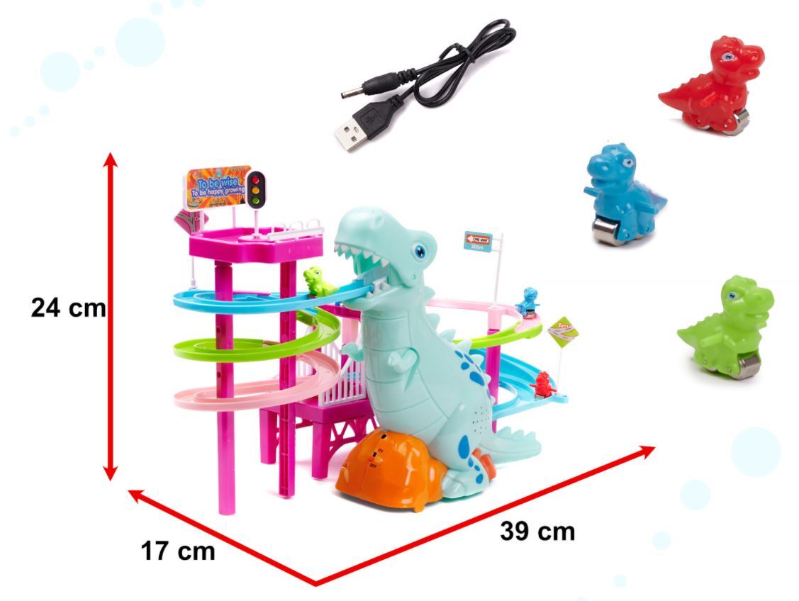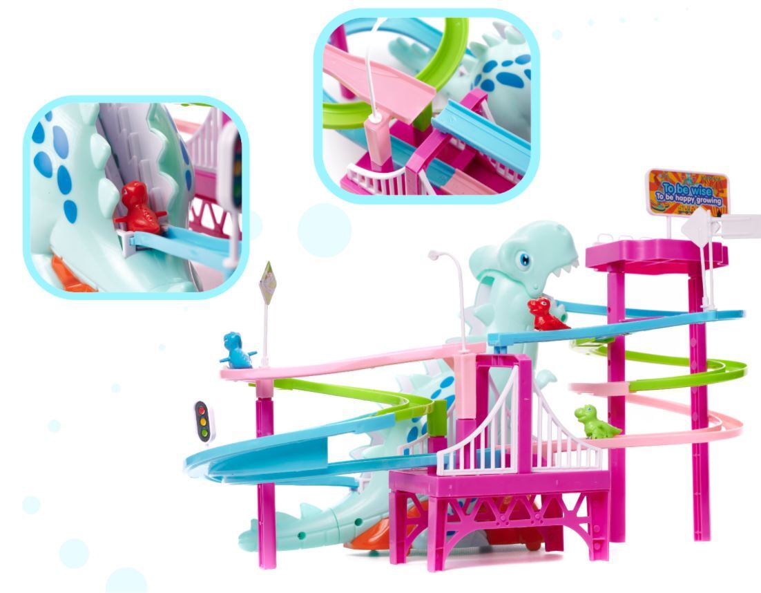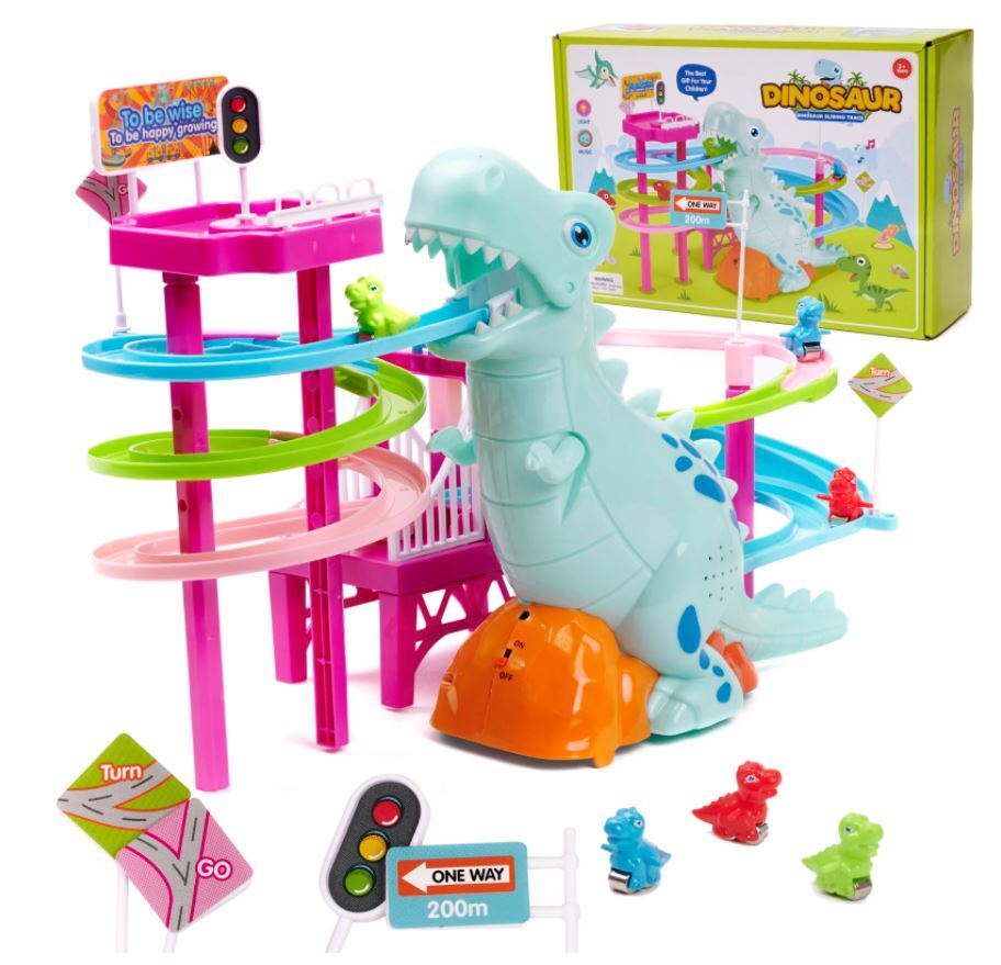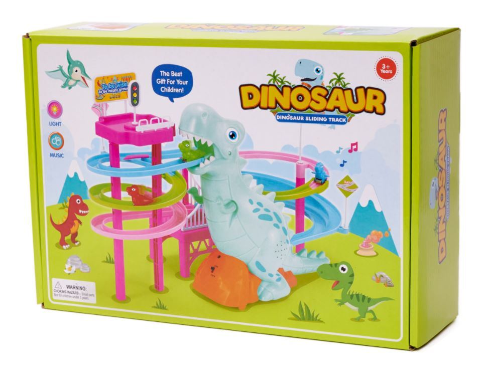 Puiki dinozauro formos lenktynių trasa. Linksmas laiko praleidimo būdas.
