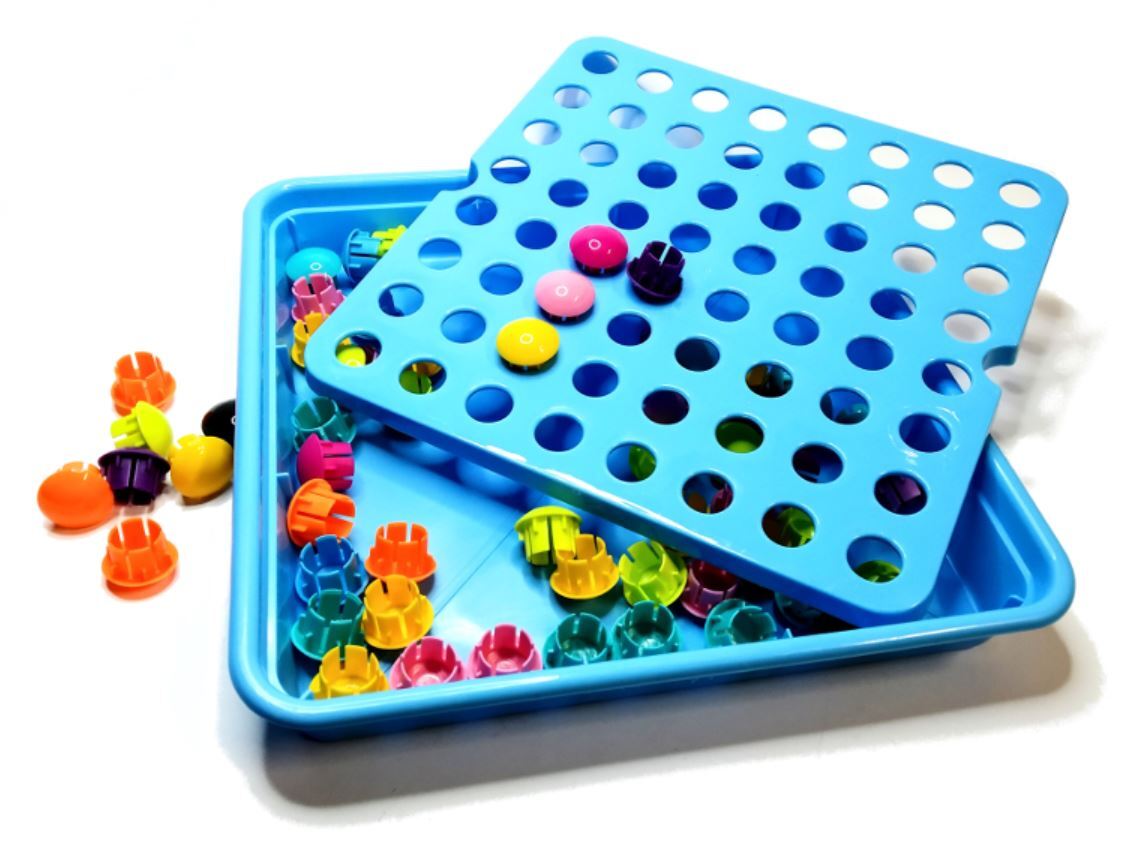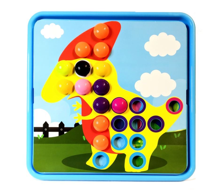 Mygtukų formų mozaika yra fantastiškas edukacinis galvosūkis, palaikantis, pavyzdžiui, spalvų mokymąsi, skaičiavimą.