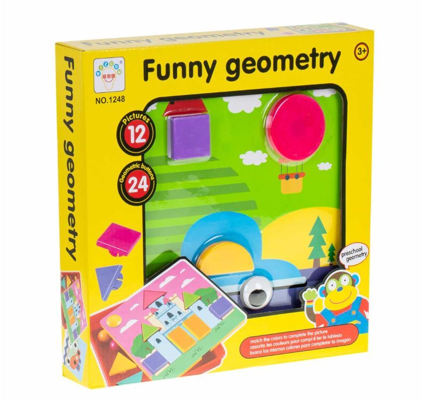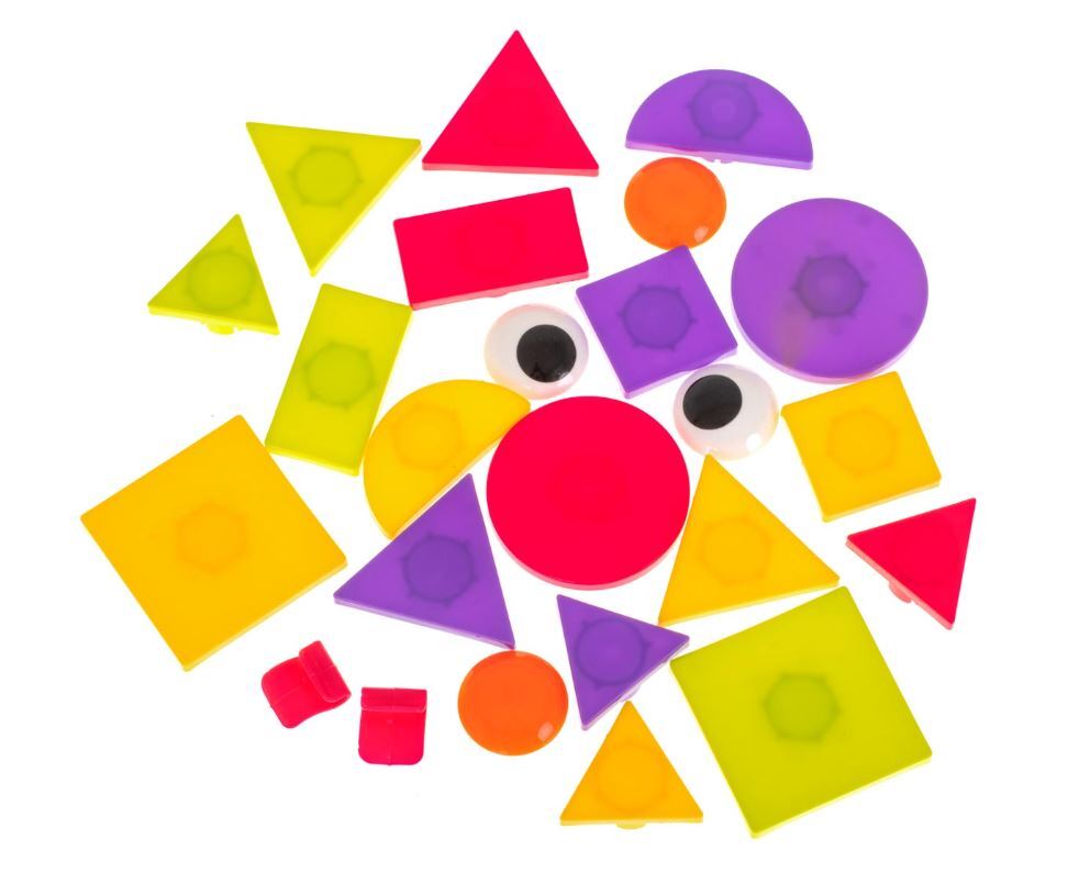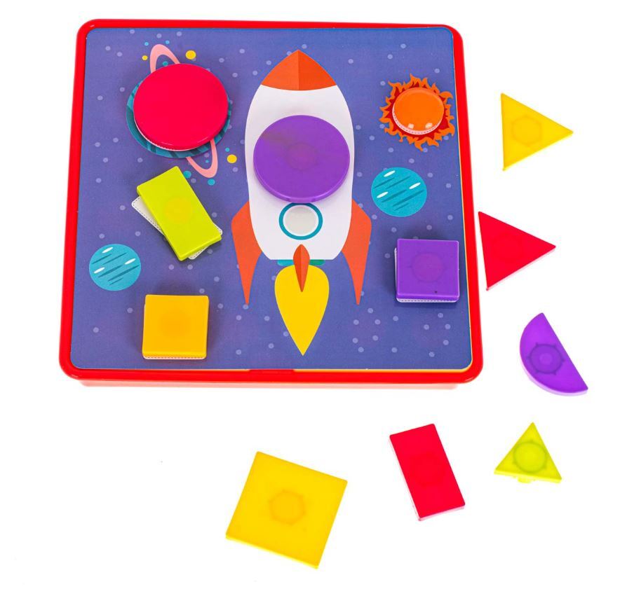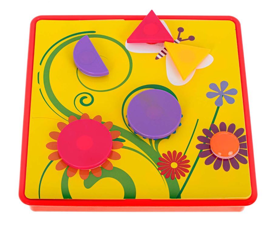 Edukacinis geometrinių figūrų galvosūkis. Palaiko spalvų mokymąsi ir skaičiavimą.