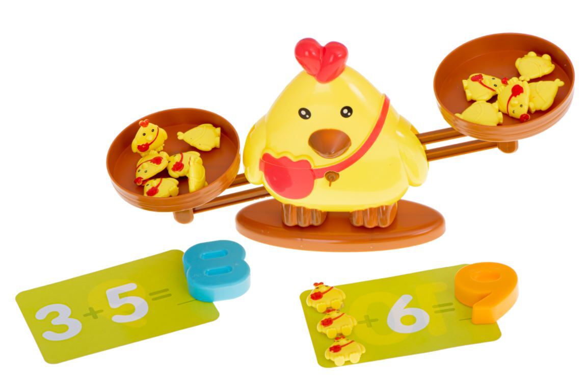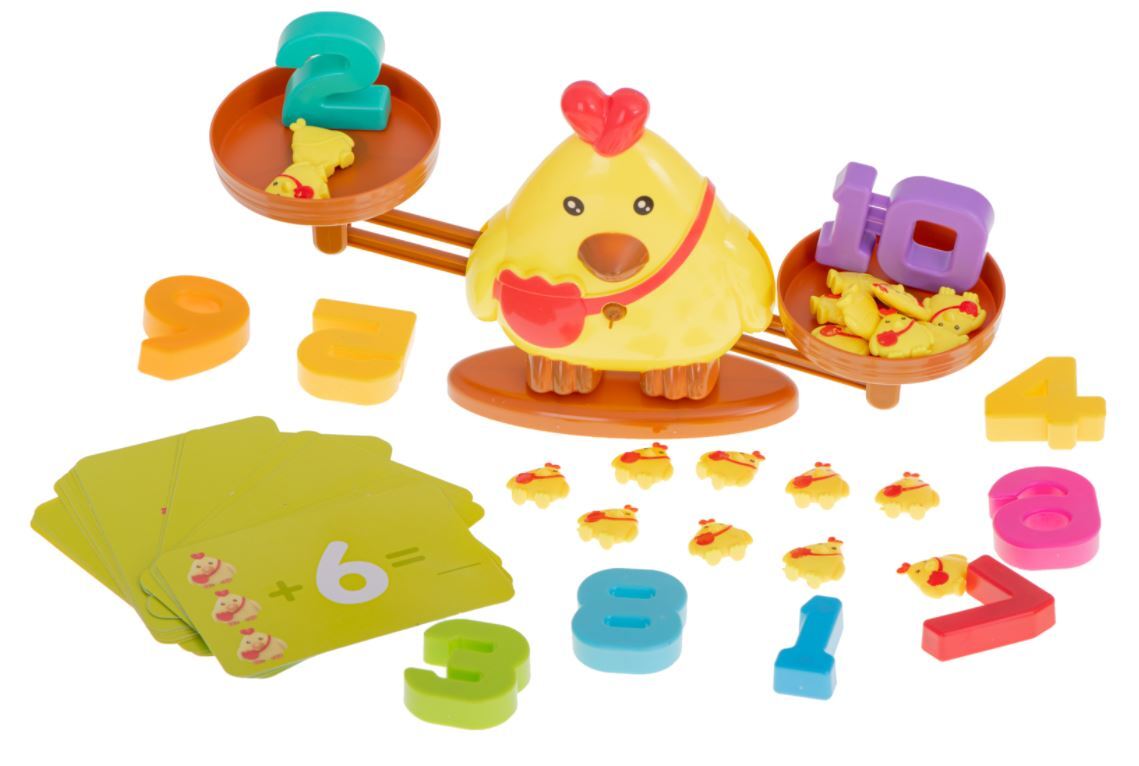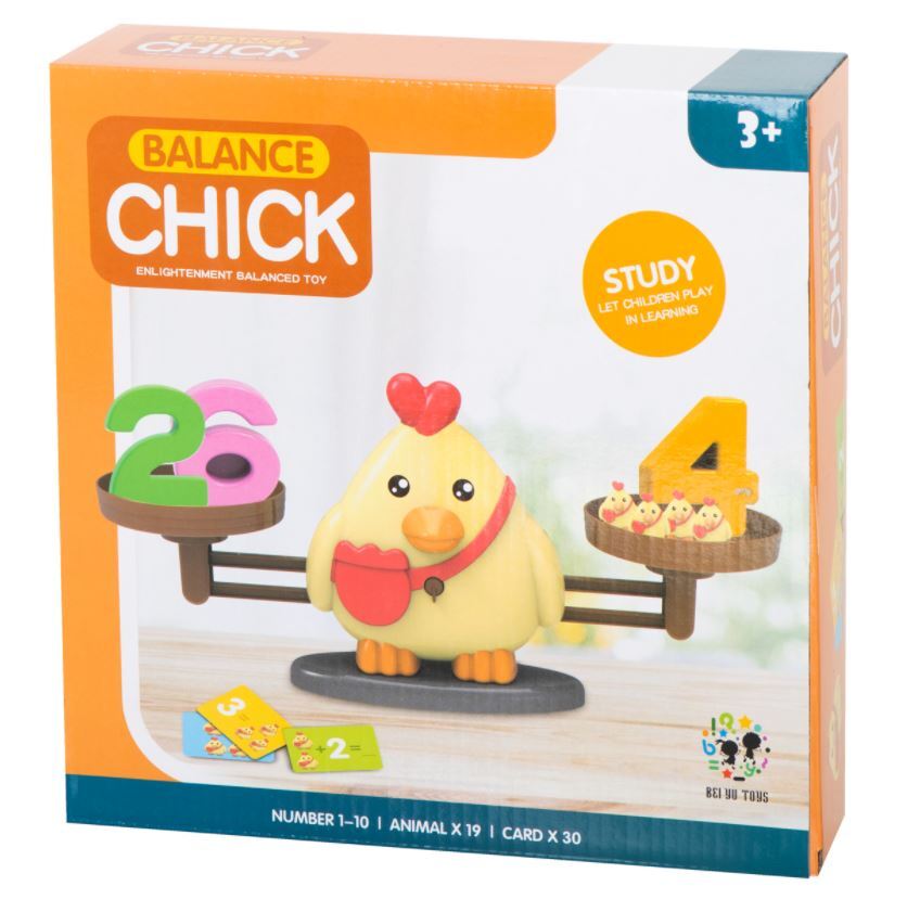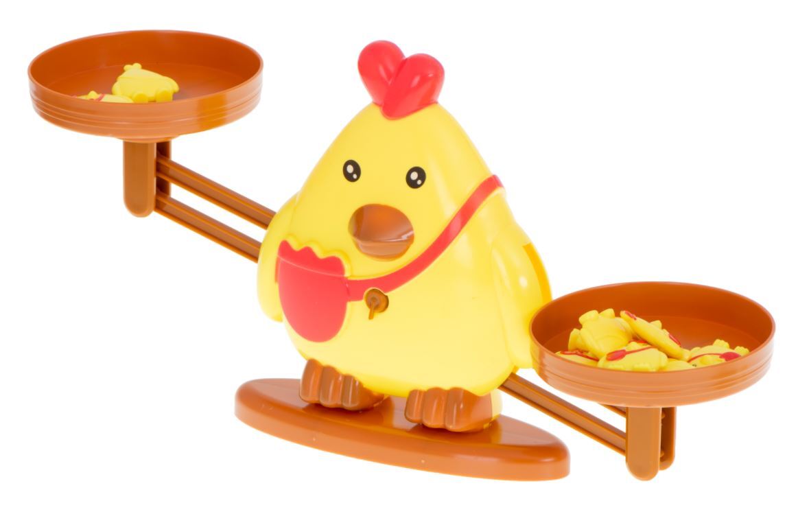 Svarstyklės viščiuko figūrėlės. Vaikai linksmindamiesi mokysis matematikos.