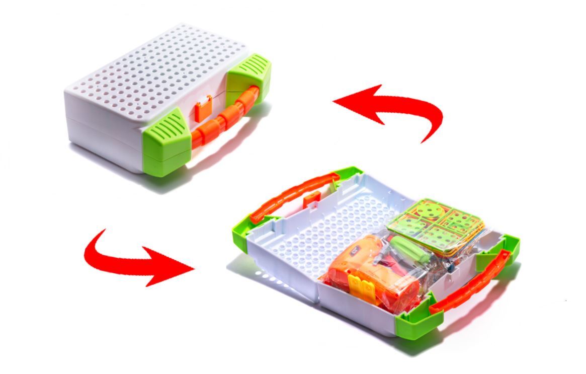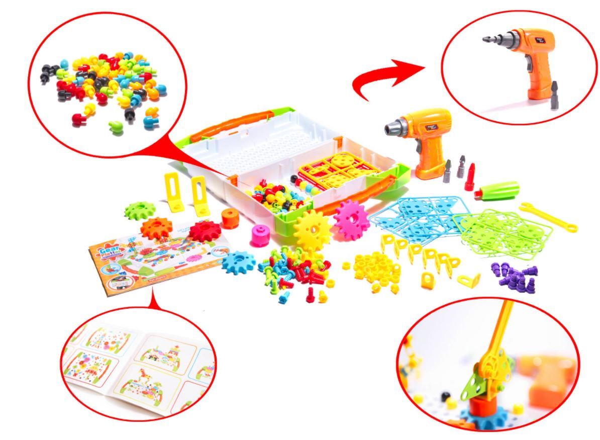 Mokomasis rinkinys su atsuktuvu. Tai susideda iš įvairių blokų įsukimo į lentą ir įvaizdžio sukūrimo.