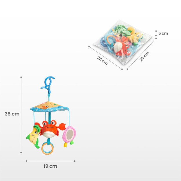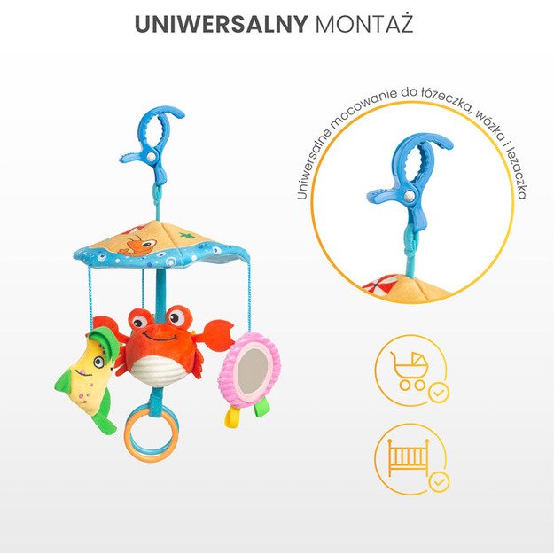 A practical and easy-to-use mount allows for easy attachment to a stroller, car seat or cot, so that the toy always remains within reach of the toddler s hands. Solid mounting ensures stability, and durable materials guarantee long hours of fun – at home, on a walk and while travelling!