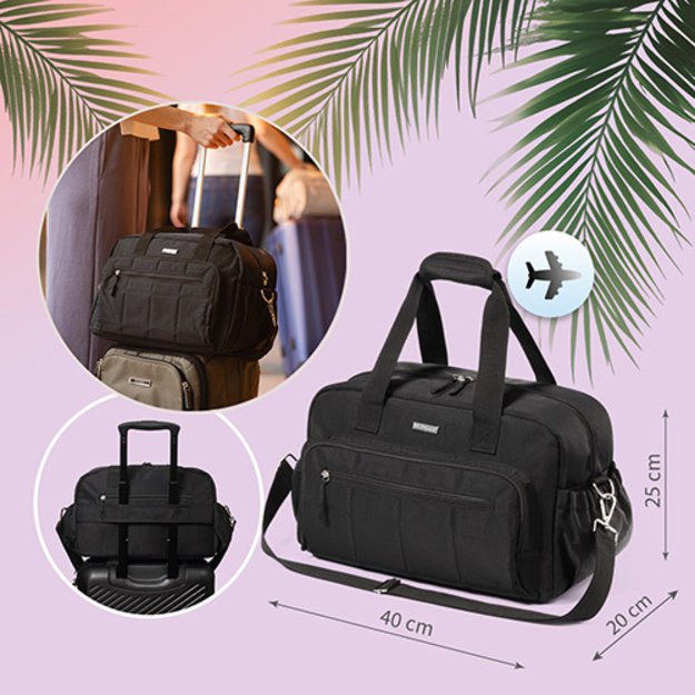 The travel bag for mothers and babies is designed to meet the requirements of the most restrictive airline. Its dimensions of 40 cm x 20 cm x 25 cm make it suitable as hand luggage.