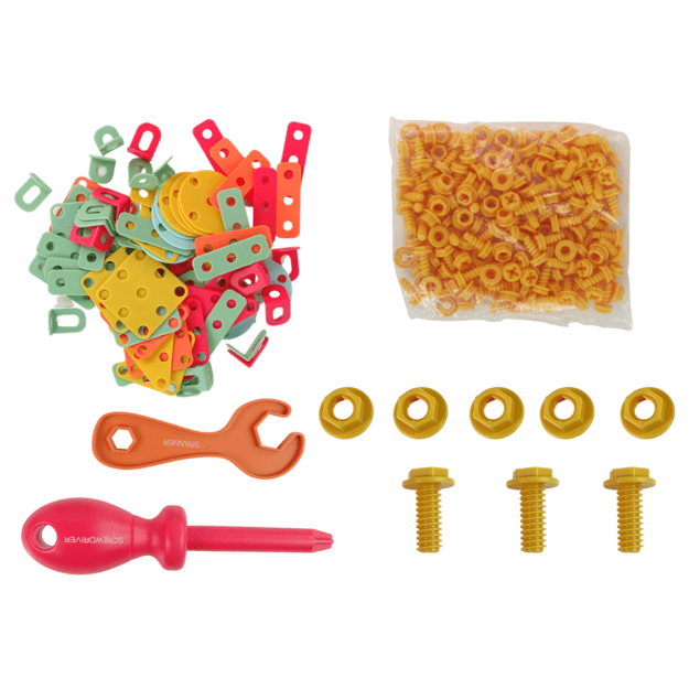 Using the DIY set, the child learns spatial thinking, creative problem solving and develops imagination. Tightening screws with the screwdriver promotes motor coordination, develops precision and patience.