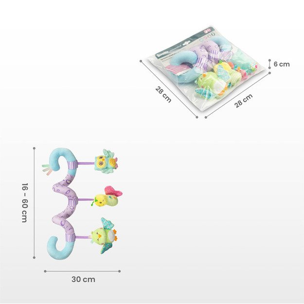 Provide your little one with colorful and engaging fun at home and during walks! COLORFUL educational spring is a soft, flexible toy that you can easily mount on the handle of a stroller, car seat or bed. Its fabulously colorful design stimulates the imagination, and sensory pendants encourage your child to discover the world!