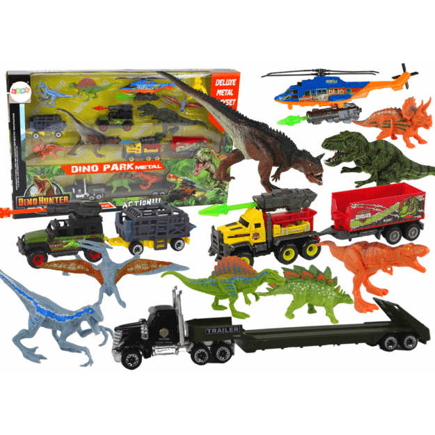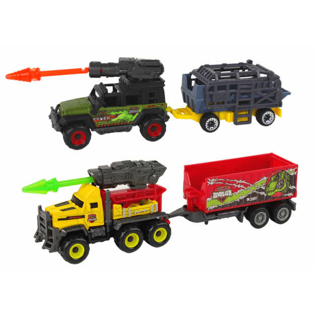 It includes three vehicles with trailers that allow you to transport dinosaurs in the field. Two of them are equipped with a rotating launcher, which adds an element of action to the play. Their carefully reproduced details make the game even more interesting.