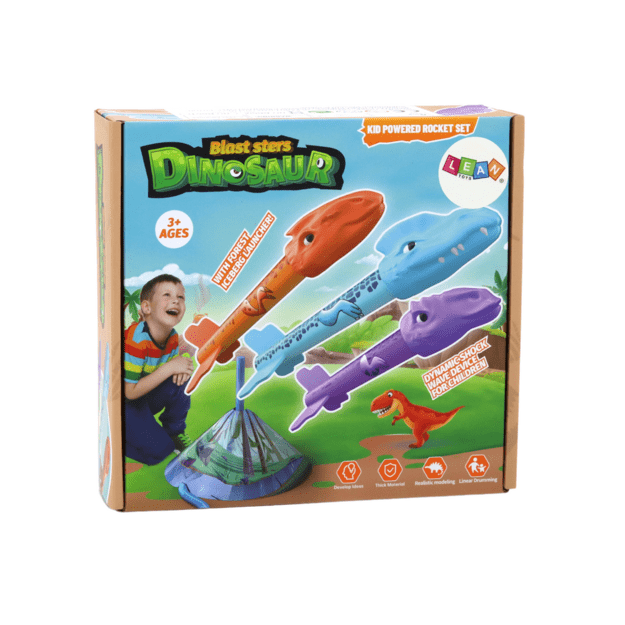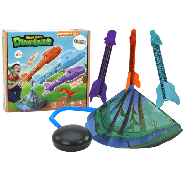 The dinosaur rocket launcher is a fascinating toy that takes children on an exciting journey to prehistoric times. The set includes three rockets in the form of colorful dinosaurs, which adds an element of authenticity and fun to play. The launcher was designed in a shape imitating a forest, with the possibility of adjusting the tilt, which allows easy and precise control over the flight of the rockets.