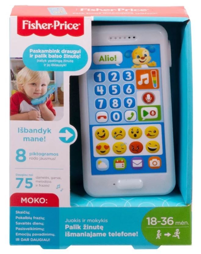 Išmaniajame telefone yra 29 aktyvūs mygtukai, draugiški emocijų mygtukai supažindins mažylį su skirtingais jausmais. Šis telefonas taps geriausiu Jūsų mažylio mokytoju ir draugu!