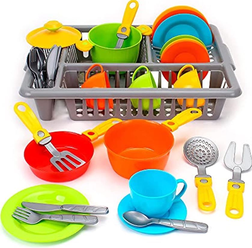 Puiki dovana jūsų mažajai šeimininkei ar šeimininkui – žaislinis indų rinkinys džiovinti. Vaikams patiks ryškios spalvos, o patiekalų įvairovė bus tikras malonumas.
