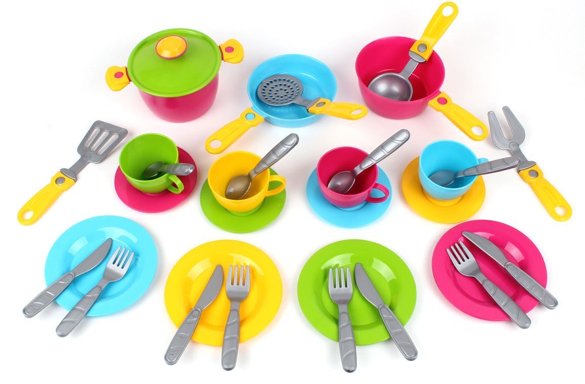 Rinkinyje yra viskas, kad galėtų įgyvendinti savo kulinarines idėjas. Keptuvė ir keptuvė skaniems barščiams ir sveikoms daržovėms, keptuvė. Skimeris, kaušas, didelė šakutė ir mentele gaminimo procesą padarys kuo tikroviškesnį. Vaikas taip pat galės pasikviesti draugus arbatos su spalvingais puodeliais ant lėkštučių.
