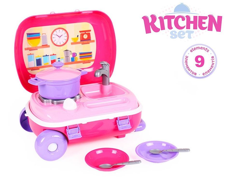 Indų rinkinys su virtuvėle ir lagaminėliu - 9 dalių 6061
