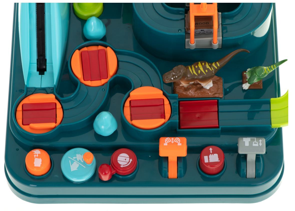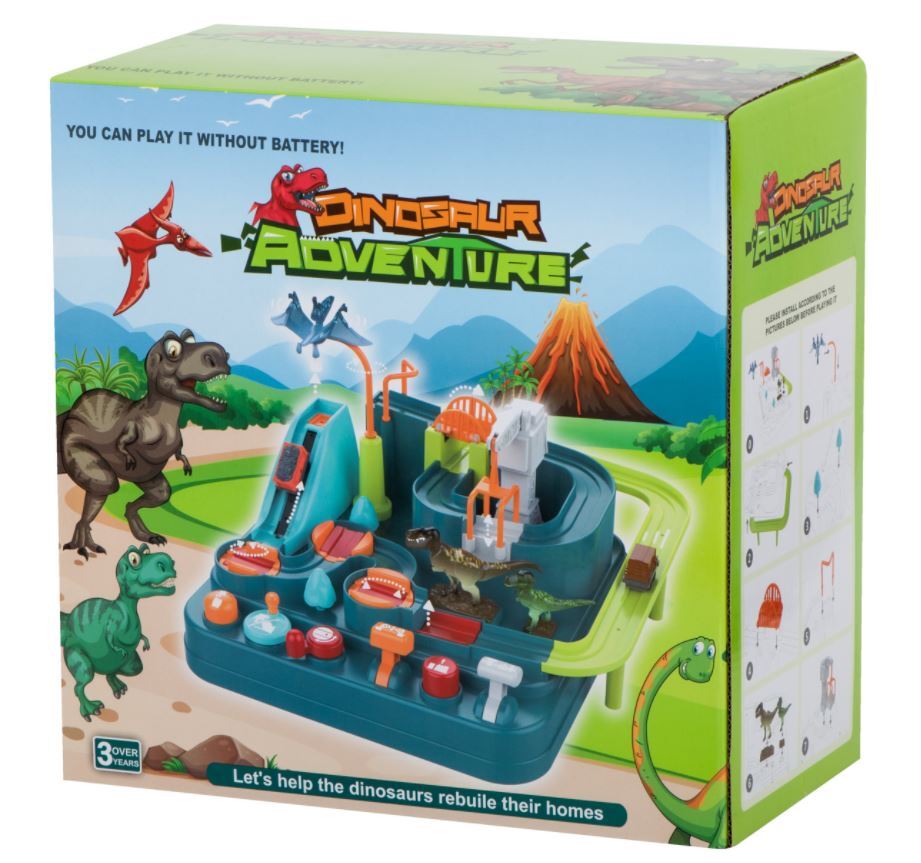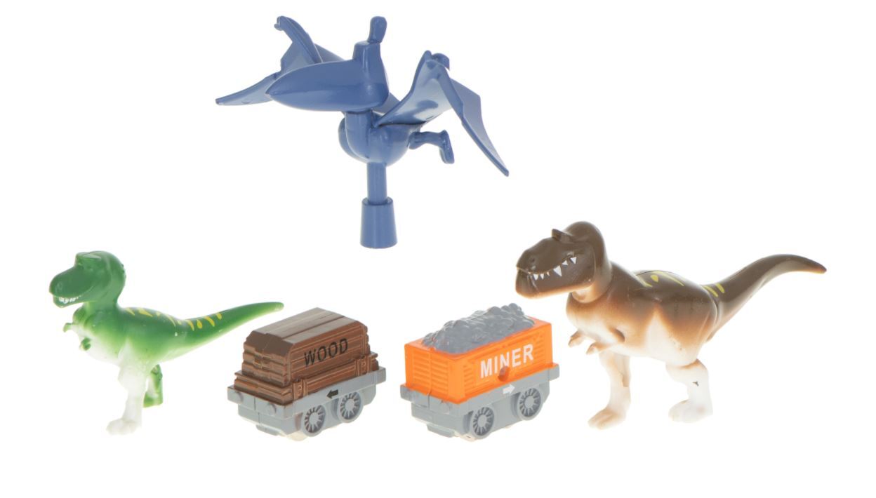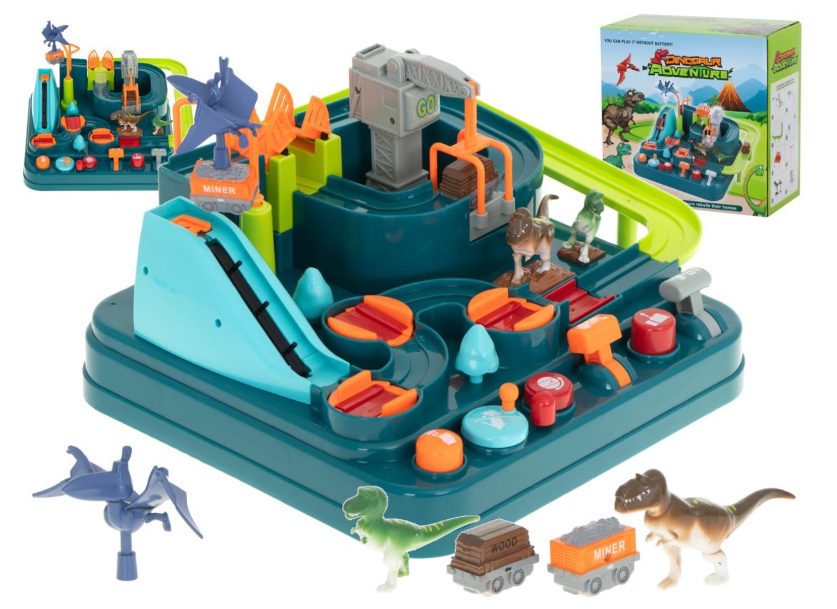 Žaidimas lavina rankinius įgūdžius ir lavina gebėjimą logiškai mąstyti. Komplekte: trasa, 2 vagonai, dinozaurų figūrėlės.