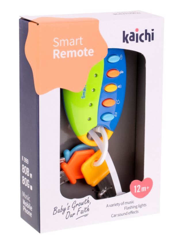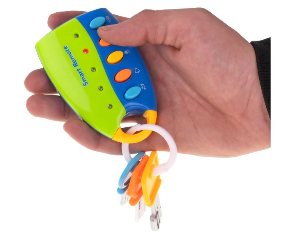 Interaktyvus žaislas pultelis ir trijų raktų rinkinys. Jame yra šviesos ir garso efektai, primenantys tikrus automobilio garsus. Ryškios spalvos ir patrauklios funkcijos paskatins jūsų vaiką žaisti.