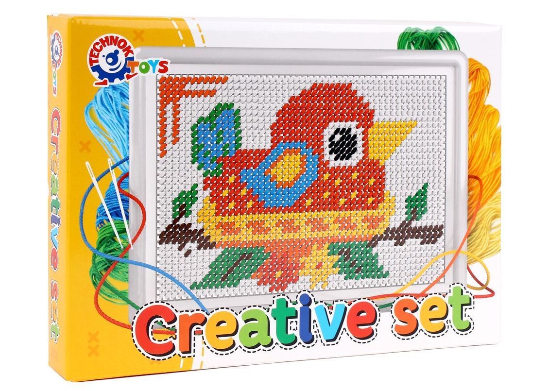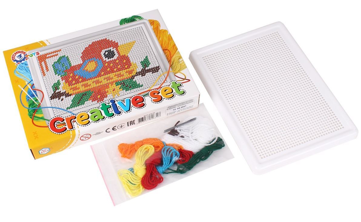 Jauniesiems menininkams siūlome žaislą „Siuvinėjimas TechnoK“, kuris leis vaikui išsiuvinėti tikrą paveikslą. Komplekte yra drobės rėmelis ir adata su didele akute, pagaminta iš plastiko – todėl jie yra saugūs vaikams. Didelės drobės kilpelės tinka pirmiesiems žingsniams ir siuvinėjimo mokymui.
