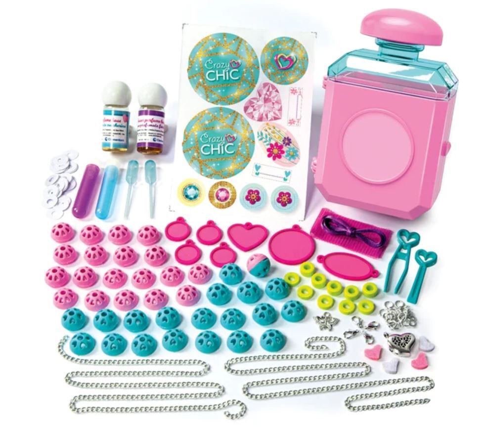 Originalus buteliuko formos kvepalų dozatorius, kuriame yra viskas, ko reikia norint sukurti kvapnius Crazy Chic pakabukus, karolius ir apyrankes!