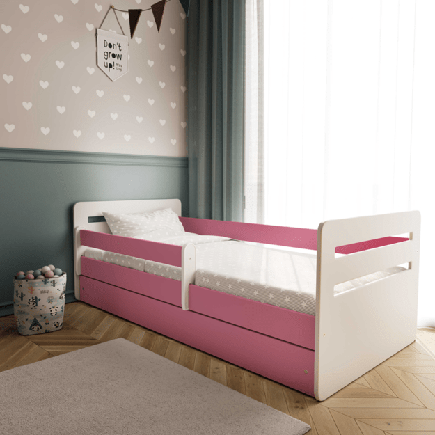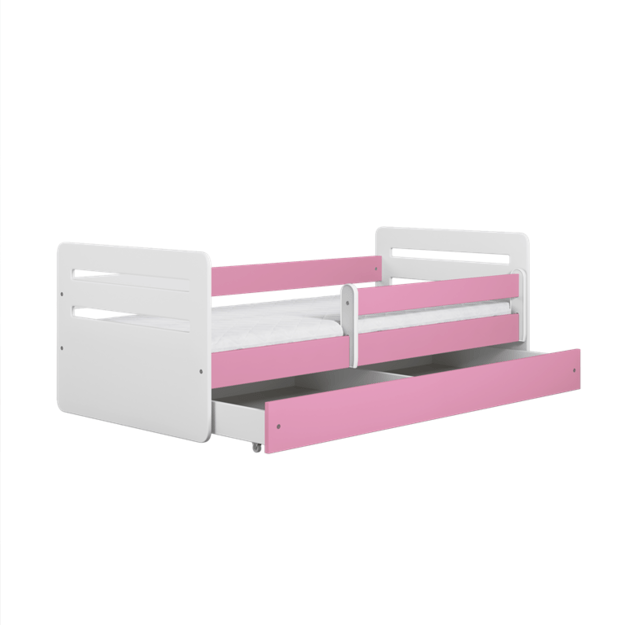 Lova tomi rožinė su stalčiumi ir čiužiniu 140/80