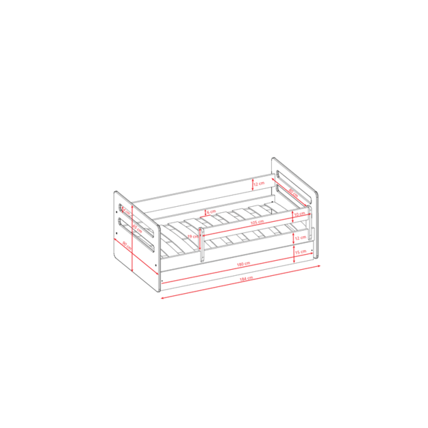 Klasikinė 1 lova su stalčiais, čiužinys su kokosu 160/80