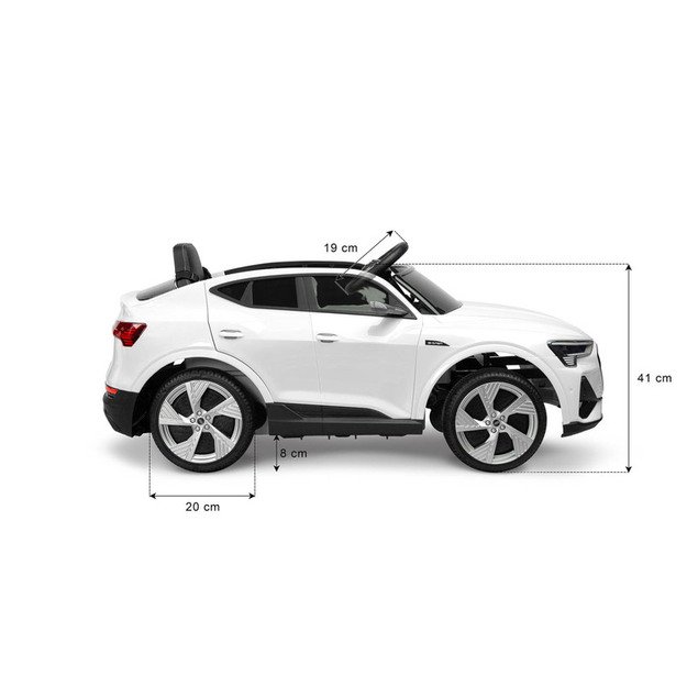 Audi E-tron Sportback - tai "Toyz" licencijuotas akumuliatorinis automobilis, kuriame derinamas elegantiškas dizainas ir elektrinės pavaros dinamiškumas. Modelis išsiskiria "Audi" būdingomis kėbulo linijomis, moderniais siaurais veidrodėliais ir jungtine galine šviesų sija. Vidinė "E-tron Sportback" stiprybė - visų ratų pavara su 45 W varikliais. Juos maitina 7 Ah akumuliatorius. Komfortą ir saugumą žaidime užtikrina: galiniai amortizatoriai, iš aukštos kokybės EVA putų pagaminti ratai, ekologiškos odos sėdynė, 3 taškų saugos diržai, lėtas įsibėgėjimas, du greičio režimai ir automatinis stabdys. Įkraunama baterija taip pat turi patogumų tėvams: nuotolinio valdymo pultelį ir nuimamus ratukus, kad būtų lengva transportuoti.