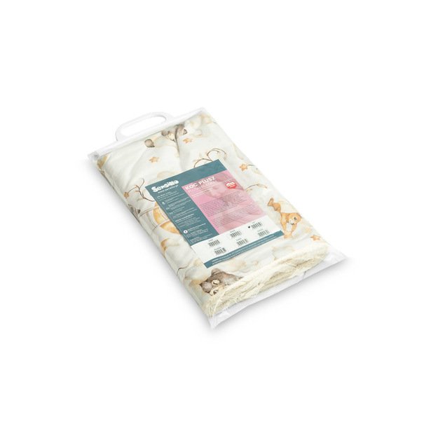 Pliušinė antklodė yra labai geras sprendimas ankstyviems rudens ir pavasario pasivaikščiojimams. Ji pagaminta iš minkšto pliušo ir 100 % medvilnės derinio. Malonus vidinis sluoksnis išlaiko šilumą šaltesnėmis dienomis. Priklausomai nuo jūsų poreikių, ją galima naudoti iš abiejų pusių. Dėl universalių matmenų jis tinka kambaryje arba pasivaikščiojimams. Jis praktiškas ir lengvas, vežimėlyje užima nedaug vietos. Ji neturi papildomo užpildo.