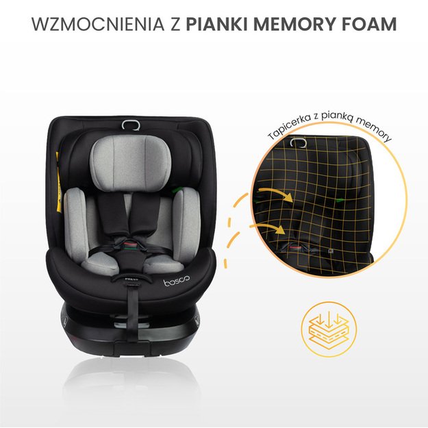 Bosco modelis atitinka R129/i-Size standartą, užtikrinantį aukščiausius saugos standartus. |