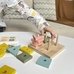 Rinkinyje taip pat yra užduočių knygelė, tad vaikas gali žaisti ir mokytis individualiai.