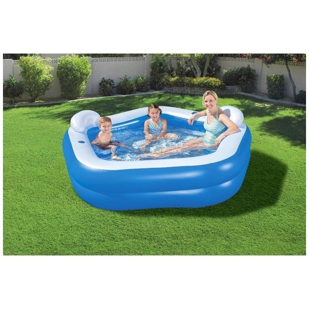 Šis baseinas skirtas visų jūsų šeimos narių ir draugų poilsiui. Jo ypatinga forma ir įmontuotos sėdynės leis jums pailsėti patogiai įsitaisius savo namuose. Jo konstrukcija stabili, o sienelės suteiks patogią atramą jūsų nugarai. Jis pagamintas iš patvaraus, pažeidimams atsparaus vinilo, be to, baseine yra sėdynės, taip pat galvos atramos, kurios pakelia jūsų poilsio standartą. Jūsų patogumui ir lengvumui šoninėse baseino sienelėse įmontuotos geriamojo vandens skylės, kad galėtumėte jį pasiekti ranka. Jo išardymas labai paprastas ir ilgai neužtruks. Be to, sulankstytas šis baseinas užima labai mažai vietos, todėl galite jį saugiai laikyti ne sezono metu arba pasiimti su savimi į kelionę.