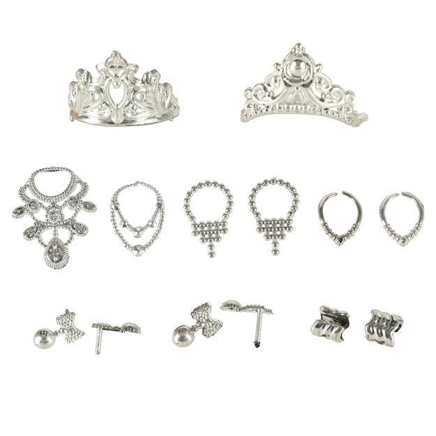 Lėlių drabužių rinkinys – tai puikus pasirinkimas mažiesiems stilistams, norintiems kurti unikalius aprangos derinius savo lėlėms. Rinkinį sudaro 10 suknelių, 10 porų batelių bei stilingi aksesuarai – auskarai, karoliai ir tiaros. Šie elementai leidžia vaikams eksperimentuoti su mada ir lavinti savo kūrybiškumą.
