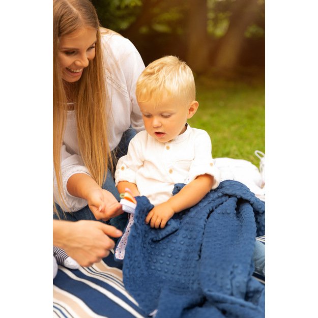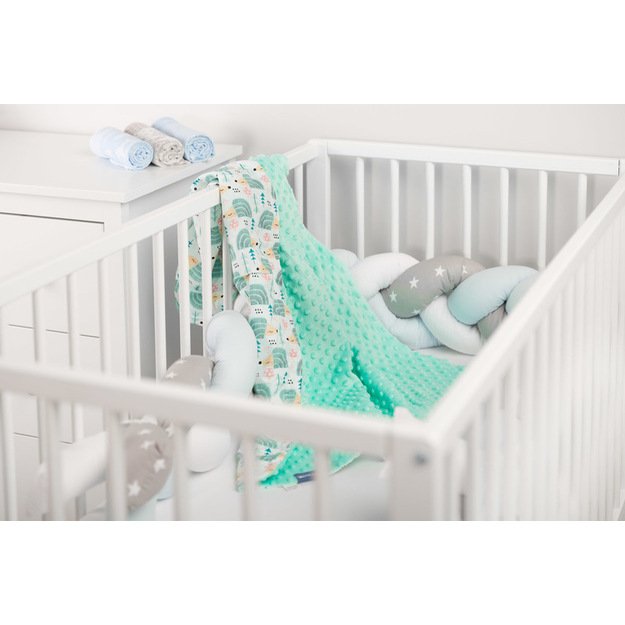 Lengvas minky antklodės užvalkalas - puikus sprendimas pavasario-vasaros pasivaikščiojimams. Ji pagaminta iš minkštos medvilnės ir švelnaus minky audinio ir, priklausomai nuo poreikių, gali būti naudojama iš abiejų pusių. Kiekvienas antklodės raštas turi skirtingos spalvos antspaudą. Ant antklodės taip pat yra spalvingų juostelių, kurios patrauks kiekvieno kūdikio dėmesį. Šiuo metu šią antklodę galima įsigyti dviejų spalvų, o netrukus pasirodys dar trys. Universali ir lengva antklodė, skirta vežimėliui arba 75&rsrsquo;100 cm dydžio lovytei.