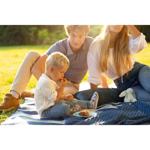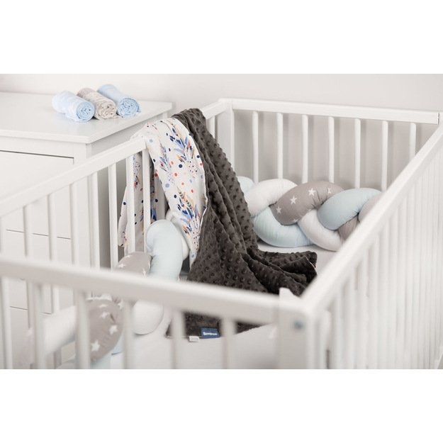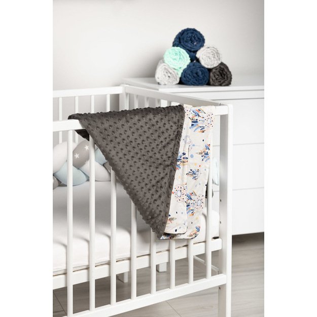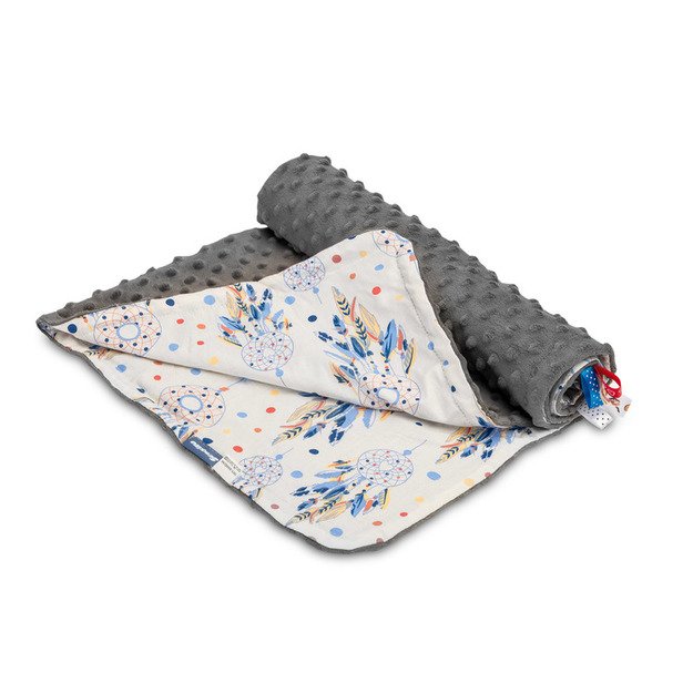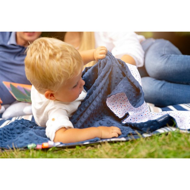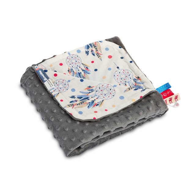 Lengvas minky antklodės užvalkalas - puikus sprendimas pavasario-vasaros pasivaikščiojimams. Ji pagaminta iš minkštos medvilnės ir švelnaus minky audinio ir, priklausomai nuo poreikių, gali būti naudojama iš abiejų pusių. Kiekvienas antklodės raštas turi skirtingos spalvos antspaudą. Ant antklodės taip pat yra spalvingų juostelių, kurios patrauks kiekvieno kūdikio dėmesį. Šiuo metu šią antklodę galima įsigyti dviejų spalvų, o netrukus pasirodys dar trys. Universali ir lengva antklodė, skirta vežimėliui arba 75&rsrsquo;100 cm dydžio lovytei.