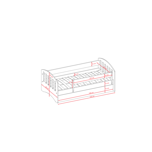 Klasikinė 1 balta lova su stalčiumi latekso čiužinys 140/80