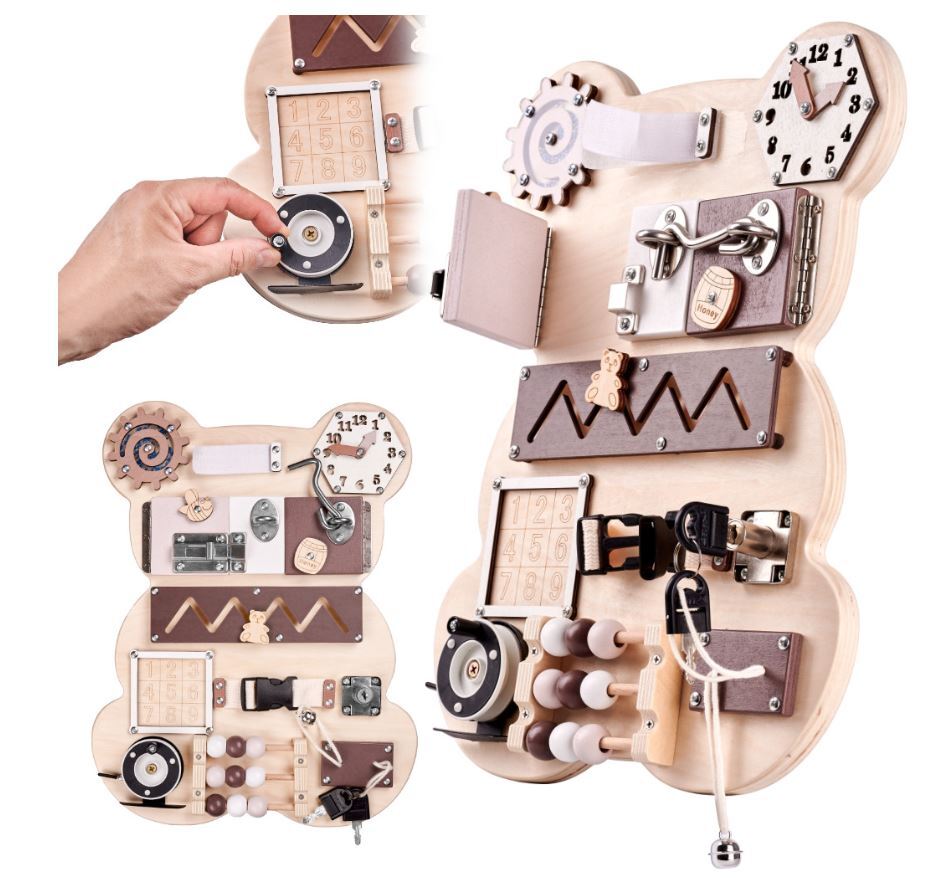 Unikali meškiuko formos manipuliavimo lenta vaikams yra puikus būdas žaisti ir palaikyti tinkamą kiekvieno mažylio vystymąsi.