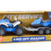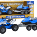 Šį rinkinį sudaro realistiškai pagamintas 17 cm ilgio keturratis, idealiai tinkantis dinamiškiems veiksmams. Dėl priekabos galima lengvai transportuoti miniatiūrinę valtį ir vandens motociklą, todėl linksmybės įgauna naują dimensiją. Rinkinys yra puikus pasirinkimas dovanai mažiesiems nuotykių ir kūrybiškų žaidimų mėgėjams.
