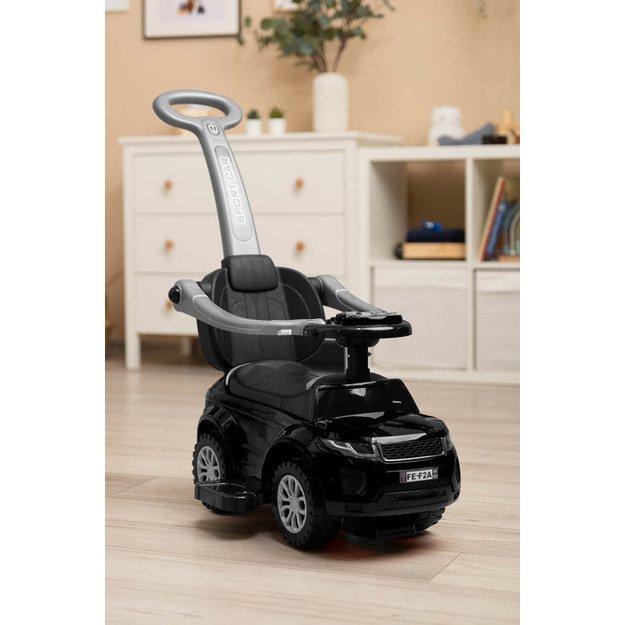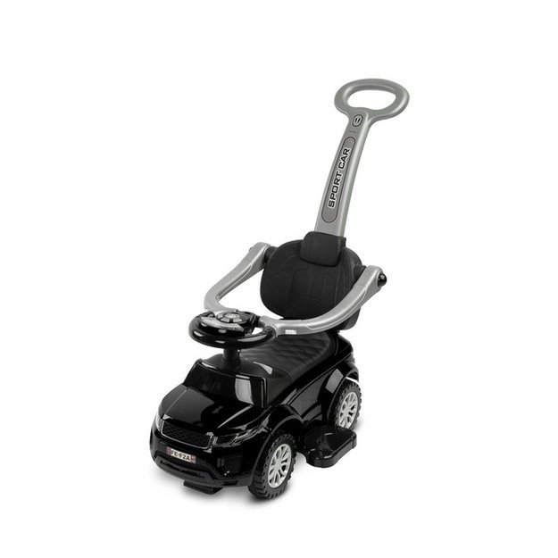 The Sport Car from Toyz is an indispensable companion for walks. Thanks to its design, it can be easily adapted to the needs of the child. It can be a pusher, a walker and a typical ride-on - just disassemble the appropriate elements. Rides have a battery-powered steering wheel with lights and sounds, and a very useful storage space under the seat. Raised rails prevent the baby from falling and block the possibility of turning the front wheels.