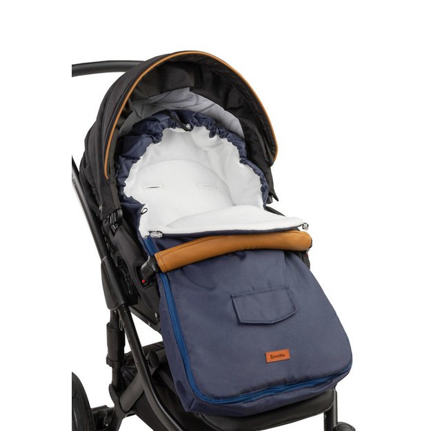 Romper krepšys vaikiškam vežimėliui– tamsiai mėlynas poliarinis flisas (95x40)