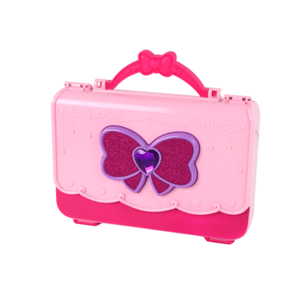 Kviečiame susipažinti su žavingu rausvu lagaminėliu su nagų aksesuarais, kuris įgyvendina mažųjų menininkų ir grožio entuziastų svajones.
