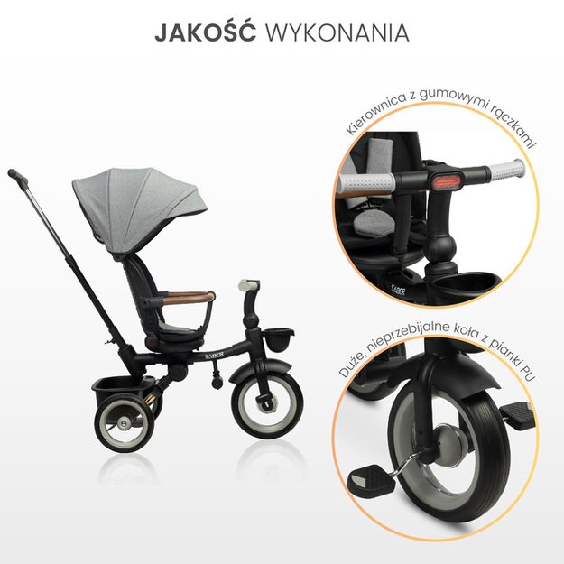 KOKYBĖS KONSTRUKCIJA Dviratis turi tvirtą metalinį rėmą ir didelius, skylėms atsparius poliuretano putplasčio ratus, kurie užtikrina ilgesnį gaminio tarnavimo laiką. Patogus vairas su guminėmis rankenomis užtikrina vaiko saugumą važiuojant. | ||