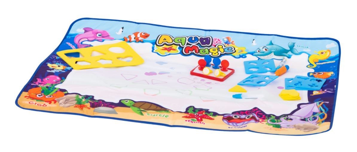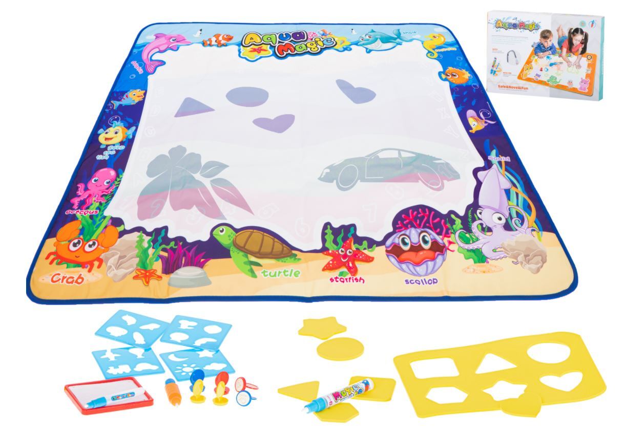 Įvairiaspalvis vandens kilimėlis su priedais. Tai lavina vaizduotę ir kūrybiškumą.