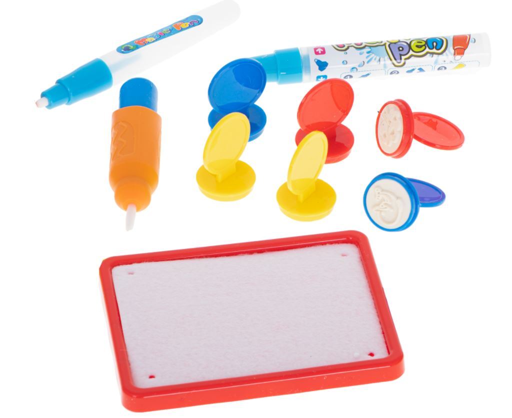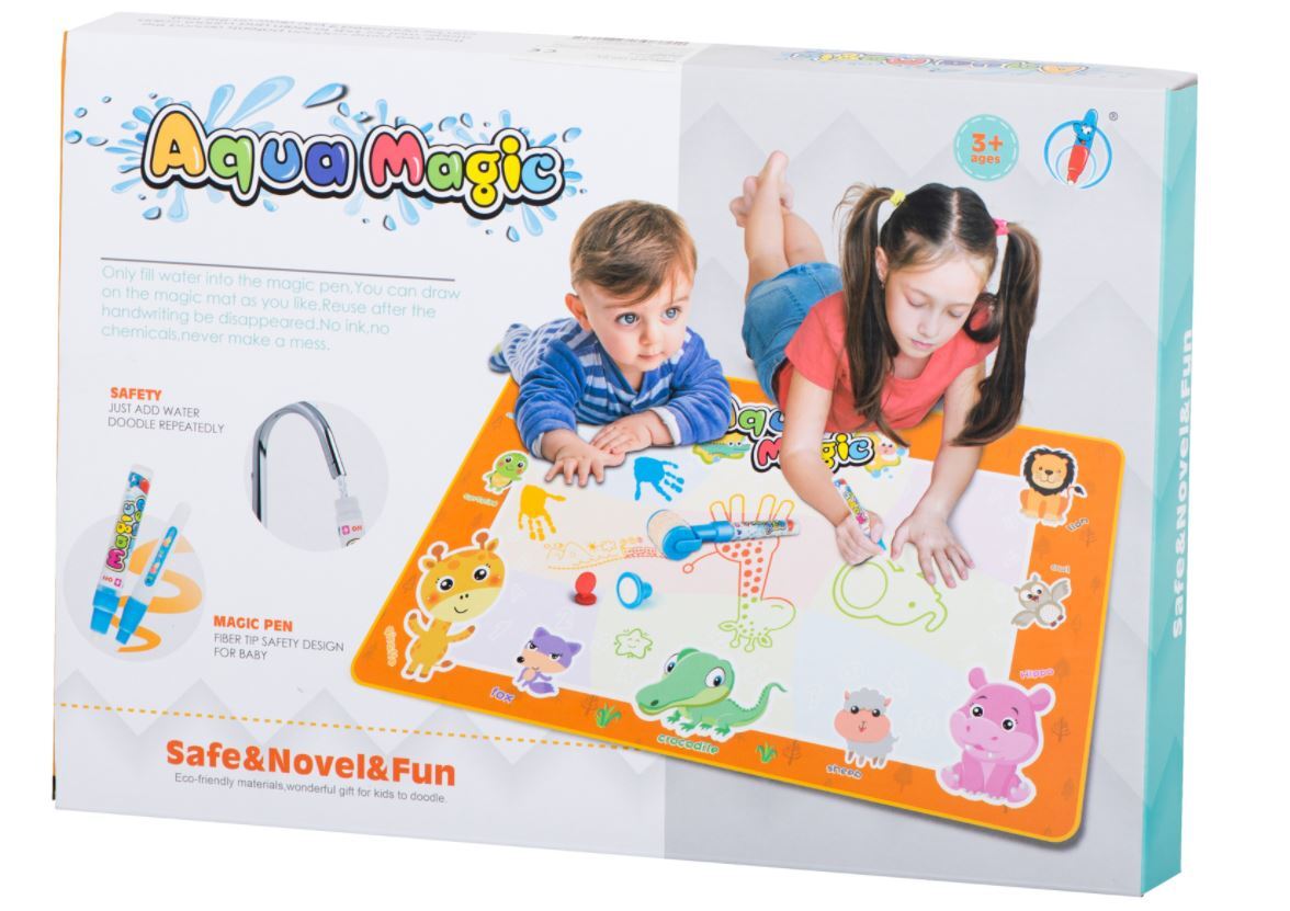 Norint piešti ant kilimėlio, nereikia jokių kreidelių, žymeklių ar dažų. Tereikia prie rinkinio pritvirtintą žymeklį užpildyti vandeniu.