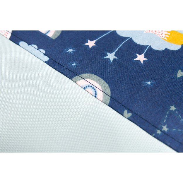 Medium toy basket is very roomy and extremely durable. Thanks to the square base, it can accommodate more than standard baskets. Its carrying handles are reinforced inside with a webbing tape, so it is not afraid of large amounts of toys. The lower part of the basket and its interior are made of durable polyester material, not susceptible to abrasions and tears, while the upper part is decorated with colorful cotton, which gives a unique charm and makes the basket a decoration of a child s room. It also works great as a laundry basket or organizer for other items. It has been stiffened with a layer of silicone non-woven fabric, thanks to which it retains its shape, and if necessary, it can be folded and stored in a drawer. Made in Poland from high-quality materials.
