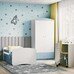 Łóżko Babydreams niebieskie bez wzoru z szufladą materac kokos 160/80