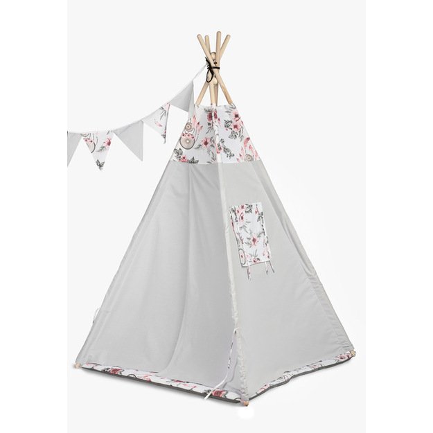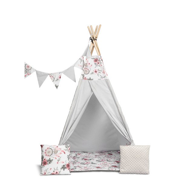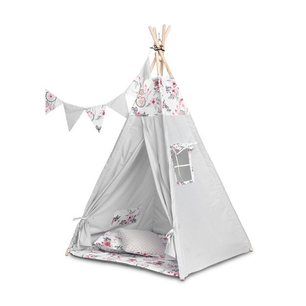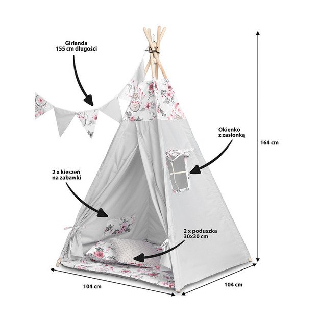 Tipi tent from TOYZ is a great way to create a corner that will inspire you to play new games and at the same time for an original interior arrangement. Tipi has a covered window that adds charm and pillows that will make the time spent inside more enjoyable. There are also 2 pockets with dimensions of 10x14 cm and 15x14 cm, where you can fit your favorite mascots. A thick mat insulates from the ground and increases the comfort of play. The whole is completed with a 150 cm garland.